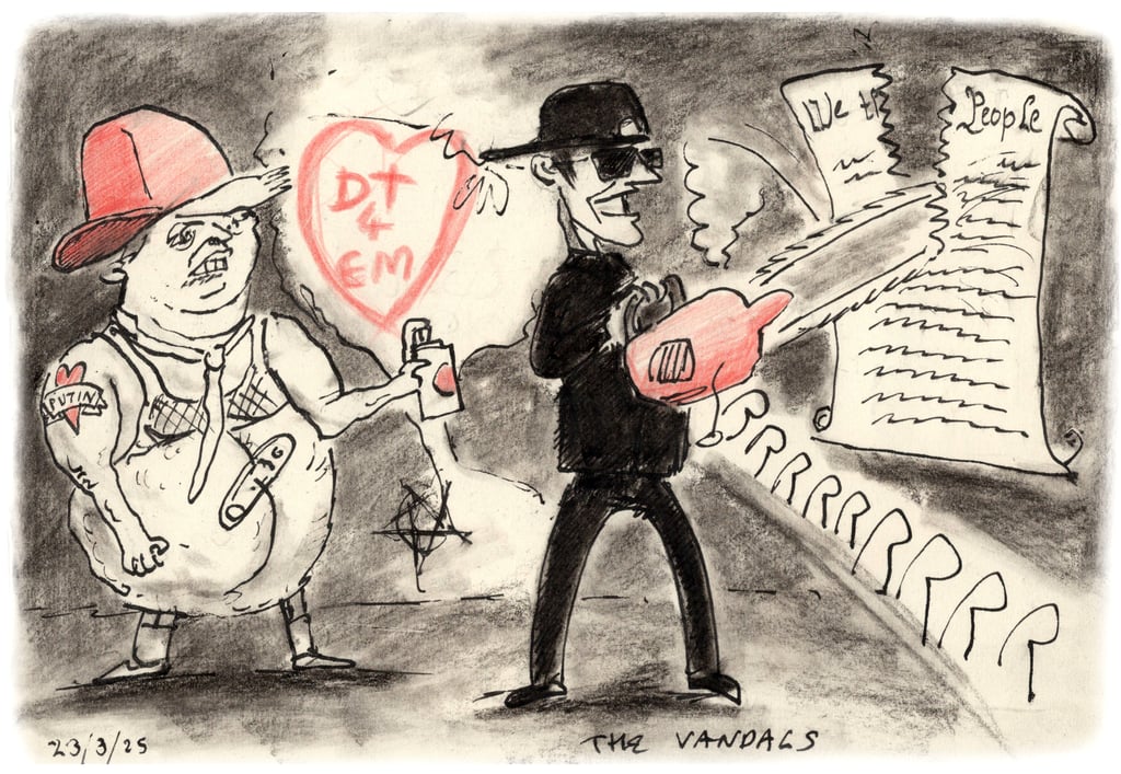The article by Michael Ignatieff describing Trump and Musk as inspired this cartoon.